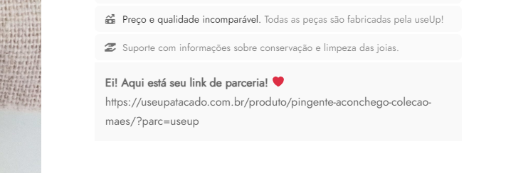 O sistema de Parcerias da useUp! é um sistema de afiliação onde você ganha por cada peça comprada à partir do seu link de indicação.